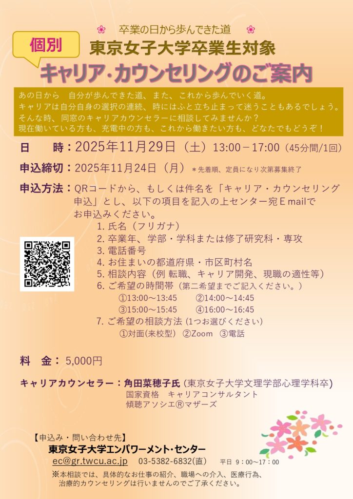 キャリアカウンセラー: 角田菜穂子氏(東京女子大学文理学部心理学科卒)